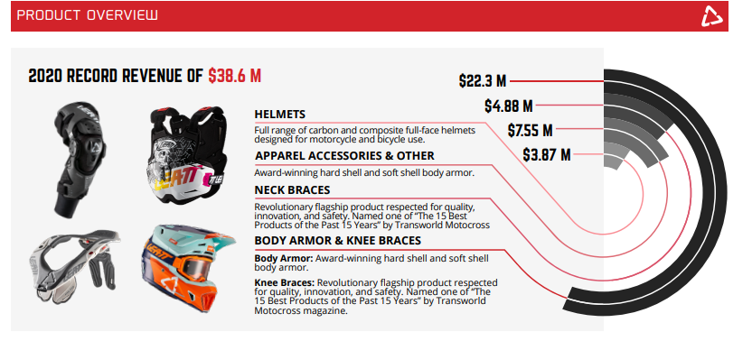 Leatt outfits athletes from head to toe with protection. Initially starting with a neck brace for motocross, the company has spread out and broadened its horizons to more gear and more sports. It now sells helmets, knee braces, gloves, chest and body protection, goggles and other tangential equipment and apparel. It designs its own products with the leadership of its founder, Dr. Chris Leatt.