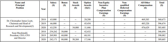 Dr. Leatt continues to run the R&D and his founding story still rings true to the mission statement of the company - to save lives! Leatt has a relatively small salary and a stock incentive plan. He owns 39% of the common shares but also receives royalties for use of some of the patents which he owns through another corporation.