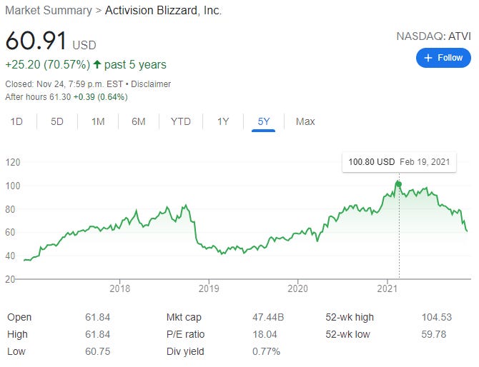 Note: I don’t own any shares of ATVI at the time of writing (November 2021).