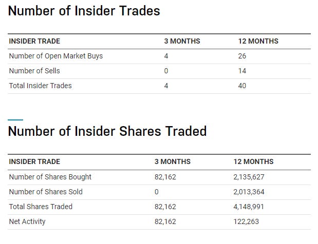 Insiders haven’t been selling in the last few months and have actually bought some shares with the recent price drop. Over the past year, there has been buying and selling.
