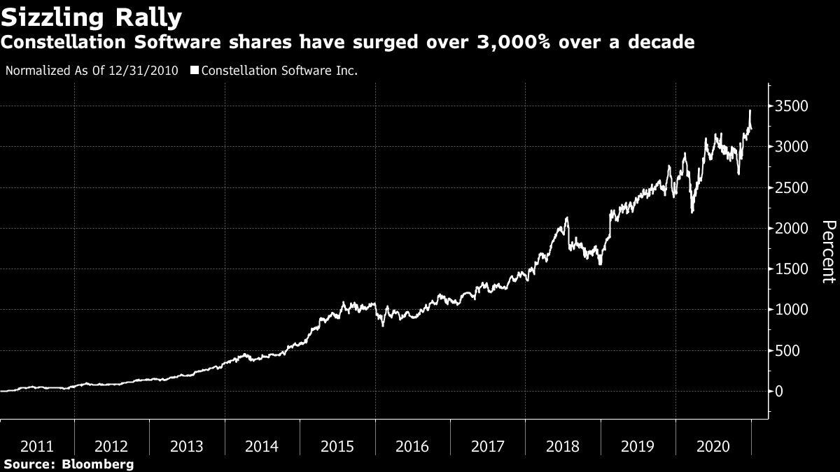 There is no doubt that Constellation Software Inc. (CSU) has been a tremendous business. Of course, that alone does not necessarily make a great investment going forward. Constellation Software trades publicly on the Toronto exchange (TSX) and is currently around a 40 Billion C$ market cap and slightly higher enterprise value (very little net debt). They have been operating since 1995 and publicly traded since 2006. It remains under the leadership of its long time CEO and founder Mark Leonard. He is known for being an amazingly smart capital allocator and leader and also for his distaste for public appearances. His letters to shareholders are must reads for a view into his mind and how a great capital allocator can provide amazing returns over the long term.