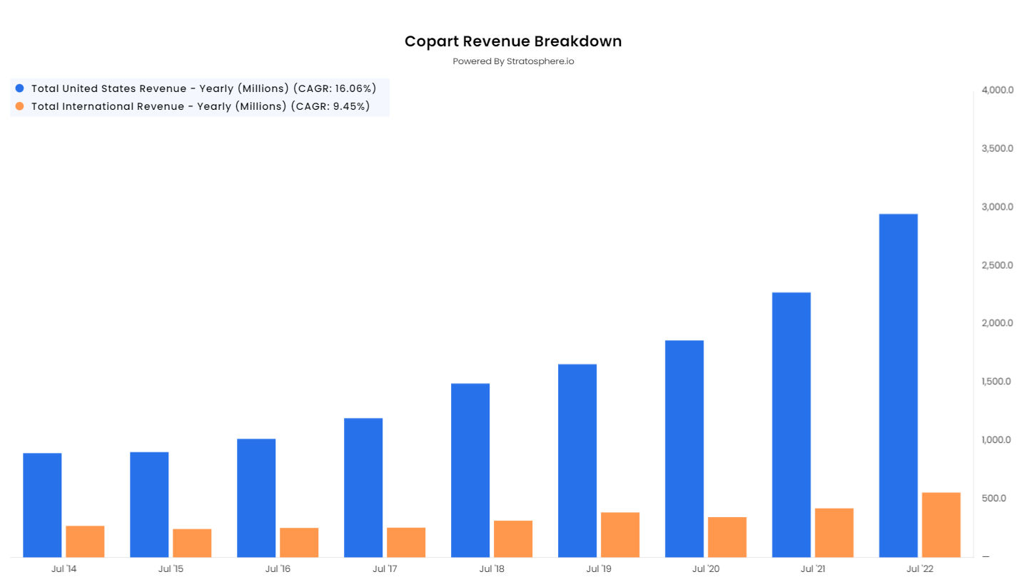 The rise of autonomous and electric vehicles could disrupt the traditional vehicle market. How these trends affect the supply of salvage vehicles and parts to Copart's inventory is yet uncertain. This one could very well be a double-edged sword as it is clear that with increasing amounts of connectivity and tech built into cars, the more expensive and therefore easier it is to write-off cars.