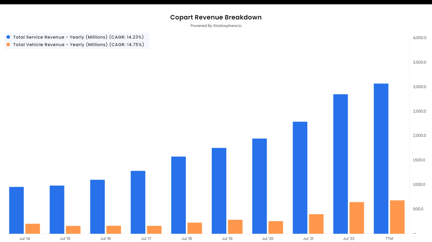 While the primary revenue source remains the sale of vehicles via online auctions, Copart also earns from service fees like towing and storage. The company has expanded its service offerings to include services like processing and auction representation.
