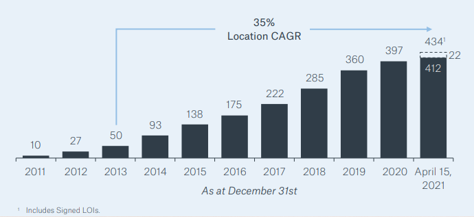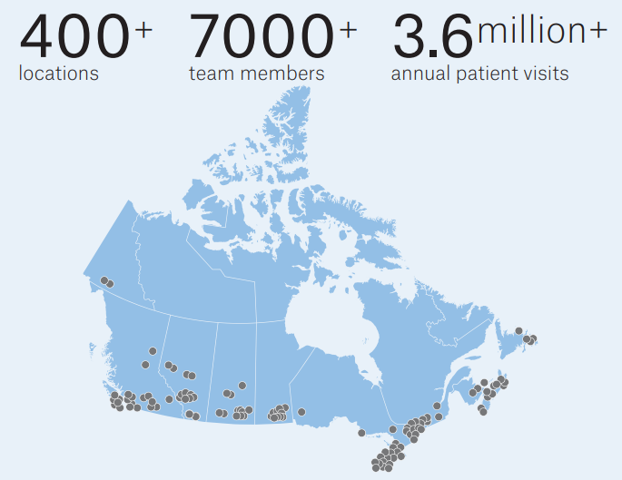 Dentalcorp has been buying and operating dental practices in Canada since 2011. They have just recently become public in 2021 at around a 2.5 billion Canadian dollar valuation. They started with just a few practices and have steadily grown to over 400 locations in Canada. They have focused on dentistry and related services and will continue to do this for the foreseeable future.