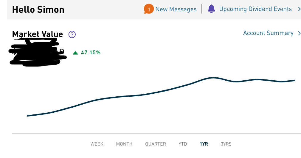 The performance of the portfolio has been just less than flat. The performance over the previous year (and essentially the same as YTD) has been good around 47%. For clarity, the way my brokerage accounts this performance isn’t quite true performance as I’ve contributed funds worth a couple of percentage points so feel free to discount 2 or 3% of performance.