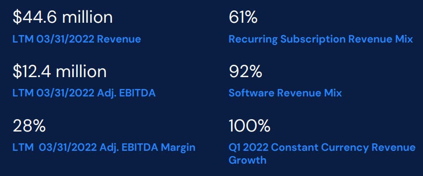 Topline revenue grew to $12.1 m for the quarter, up 100% from 2021. There were >30% operating cash flow margins (continued from Q4 2021), at $3.9 m up 200% from 2021.